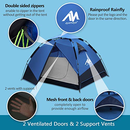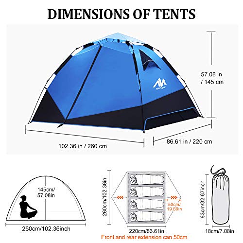Tenda impermeabile per 3 4 persone, tenda da campeggio, tenda a cupola, con sistema Quick up, 2 porte, a doppia parete, per campeggio, viaggi, spiaggia, escursionismo : Amazon.it: Sport e tempo libero