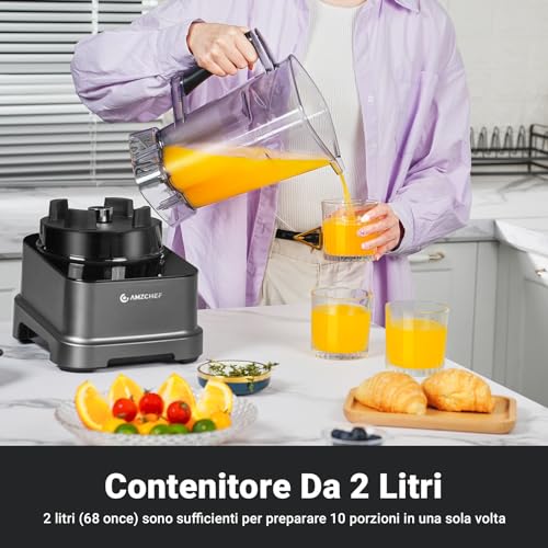 AMZCHEF 8 IN 1 Frullatore Tritatutto Multifunzione con Touch LCD | Frullatore 2000W con 8 Menu e 10 Velocità | Blender 2L per Tritaghiaccio, Gelato, Smoothie, Estratto, Purea, Salsa | Grigio : Amazon.it: Casa e cucina