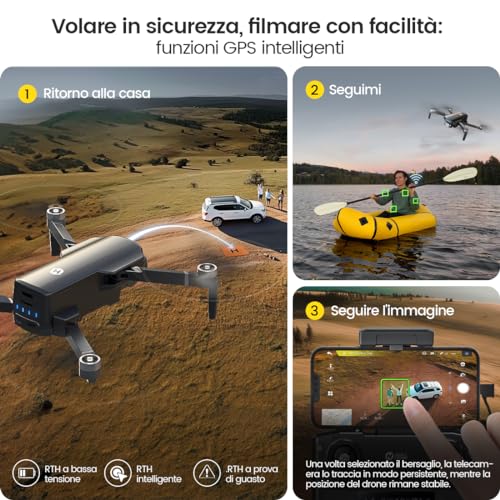 Holy Stone HS360S GPS Drone con Telecamera 4K per Adulti Principianti, RC quadcopterr con 3KM FPV Trasmissione, Motore Brushless, Follow Me, Ritorno a Casa Intelligente, Trasmissione 5G, meno di 249g : Giochi e giocattoli