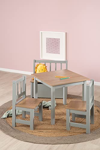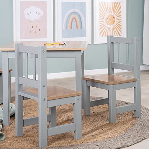 roba Set Tavolo 2 Sedie per Bambini Woody Robusti e Resistenti Mobili per la Cameretta dai 18 Mesi Decorazione in Legno Legno Laccato Grigio : Moda