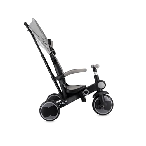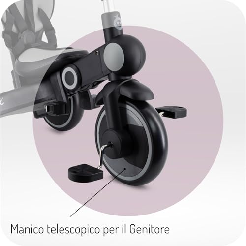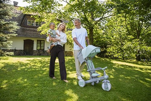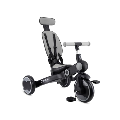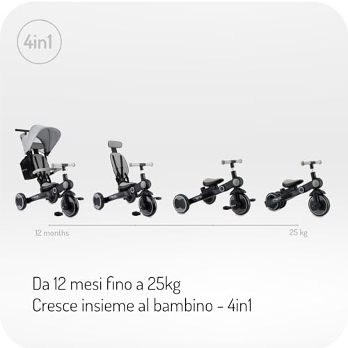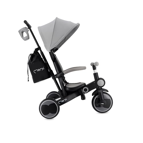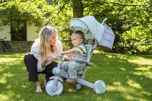 Triciclo per bambini MoMi 4in1 SOLIVIA con manubrio telescopico, cinture di sicurezza a 5 punti, per bambini a partire da 12 mesi, con capottina parasole, ruote in PU, borsa e portabicchiere : Giochi e giocattoli