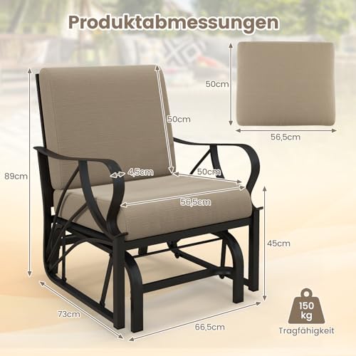 COSTWAY Sedia a Dondolo, Metallo, Marrone, 73 x 66,5 x 89 cm : Casa e cucina