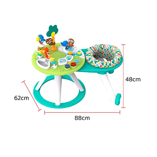Bright Starts, Tavolo e Centro Attività Around We Go Tropic Cool con Luci e Suoni, 10 Giochi di Attività, Girello Musicale, Sedile Girevole, Sviluppo Motorio, Verde, dai 6 Mesi : Altro