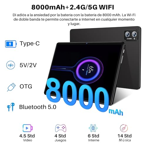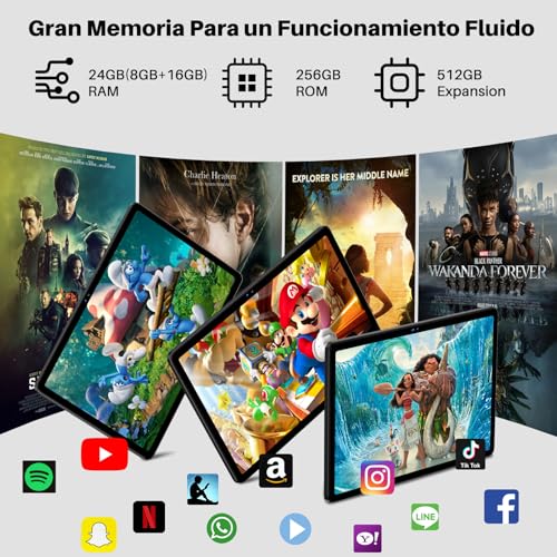 SUAAT 2025 Newest Tablet 11 Pollici 24 GB RAM 256 GB ROM (espandibile a 512GB), Android 14 Octa Core, 1280 * 800 HD, WiFi 6, Bluetooth 5.0, 8000 mAh, 13MP 5MP, Tablet con Custodia, Nero : Informatica