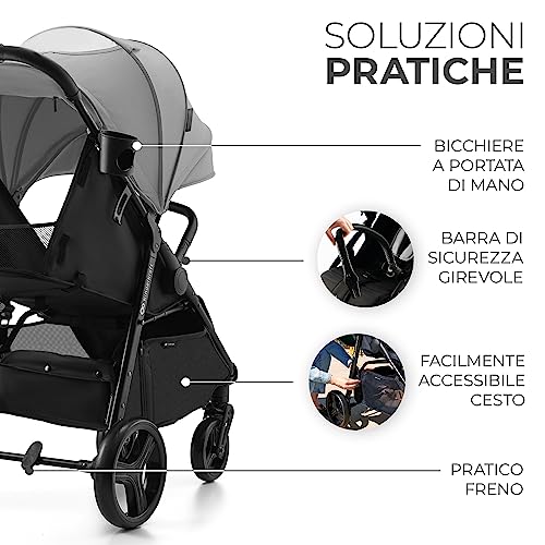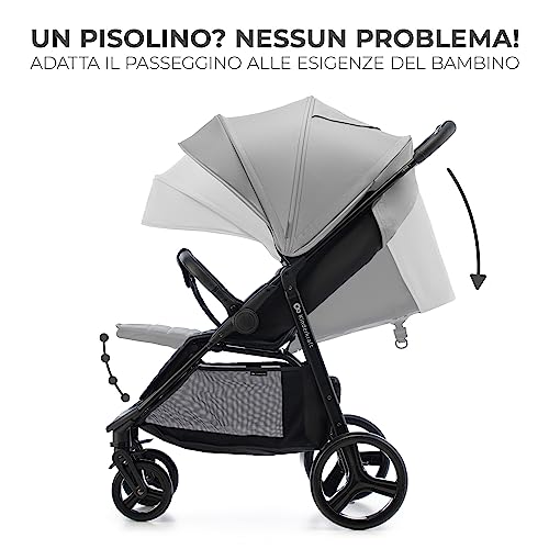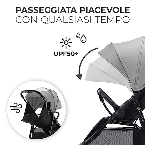 Kinderkraft RINE Passeggino leggero fino 22 kg, Chiusura con una mano, Capotta impermeabile con filtro UPF50 , Barra di sicurezza girevole, Portabicchiere, Grigio : Prima infanzia