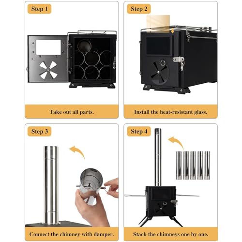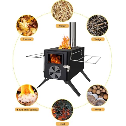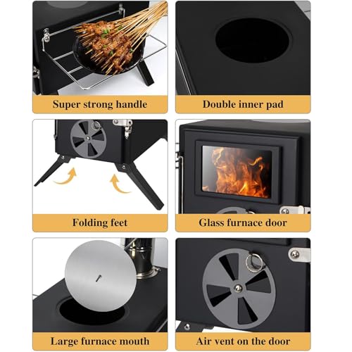 TAIMIKO Stufa a legna portatile da campeggio, stufa a legna da campeggio, con tubo antivento in acciaio 7 Stainles, per riscaldamento da campeggio, alloggio, cucina e barbecue, nero : Amazon.it: Sport e tempo libero