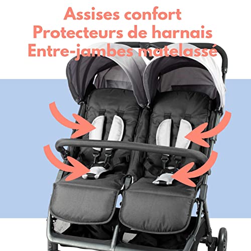 Bambisol Passeggino a doppia costa | Ideale per gemelli fin dalla nascita con pieghevole ultra compatto | Colore nero e grigio : Amazon.it: Prima infanzia