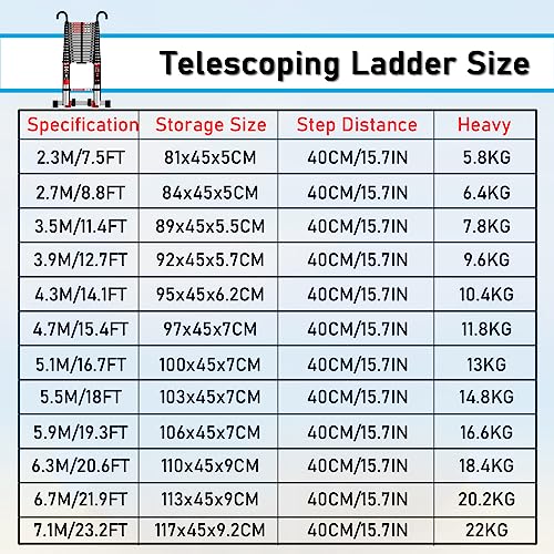 VUIPAJQC Scala telescopica Estensibile, Scala telescopica in Fibra di Vetro con Gancio Staccabile, Scale retrattili Pieghevoli Non conduttive per attività di Copertura Esterna, 150K, 8M/26f : Amazon.it: Fai da te