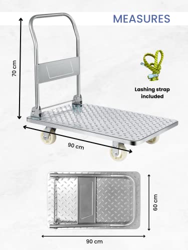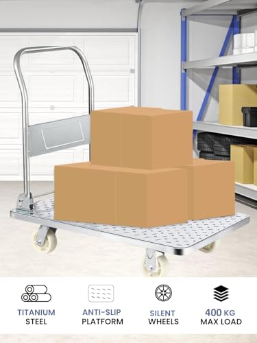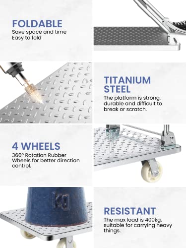 Carrello a piattaforma con ruote. Carriola pieghevole con carico di 400 kg. Carrello con piattaforma manuale, trasporto anticollisione per traslochi, magazzino. Acciaio al titanio. : Amazon.it: Commercio, Industria e Scienza
