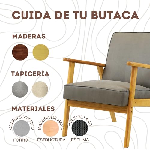 HOME DESIGN & CONFORT Poltrona Roma antimacchia in stile nordico Poltrone da salotto in legno massello Poltrona da camera (Beige/Naturale) : Amazon.it: Casa e cucina