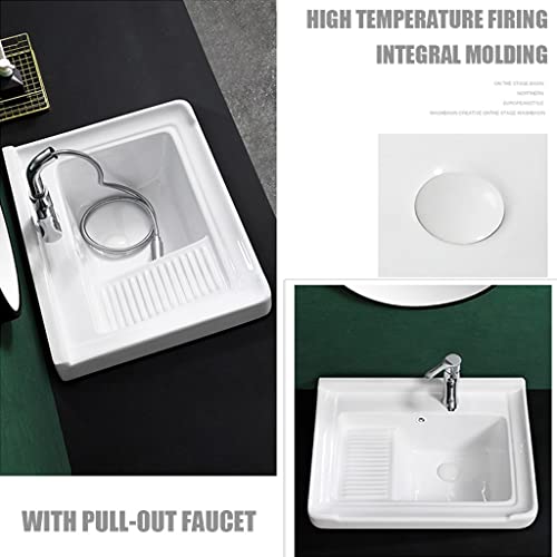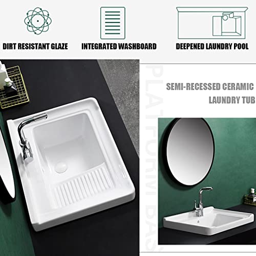 Lavandino in Ceramica Bianca Lavello da Bagno A Vasca Singola con Balcone Vasca da Bagno Quadrata A Semi Incasso con Piano di Lavaggio Facile da Pulire (Color : Bianca, S : 62x48cm) : Amazon.it: Fai da te