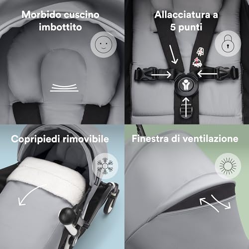 Stokke YOYO 0 Newborn Pack, Stone Include materasso, capottina estendibile e allacciatura a 5 punti Richiede telaio YOYO (venduto separatamente) : Prima infanzia