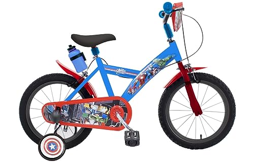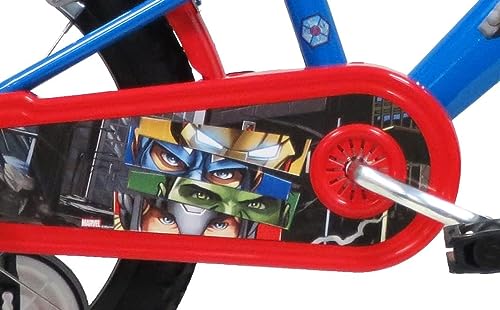 albri 16, Bicicletta da 14 Pollici Avengers, con stabilizzatori Laterali, Borraccia e Scudo Anteriore Personalizzato. Made in Italy Bambino, Rosso : Sport e tempo libero