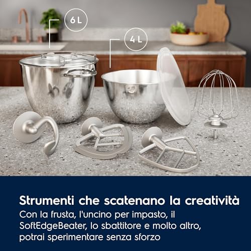 Electrolux Impastatrice Planetaria Robot da Cucina Multifunzione, E6KM1 4BPT, Mixer Planetaria Professionale, Ciotola 6 & 4 Litri Capacità, Con Frusta Da Cucina, 1200W, Acciaio Inox & Nero Opaco : Amazon.it: Casa e cucina