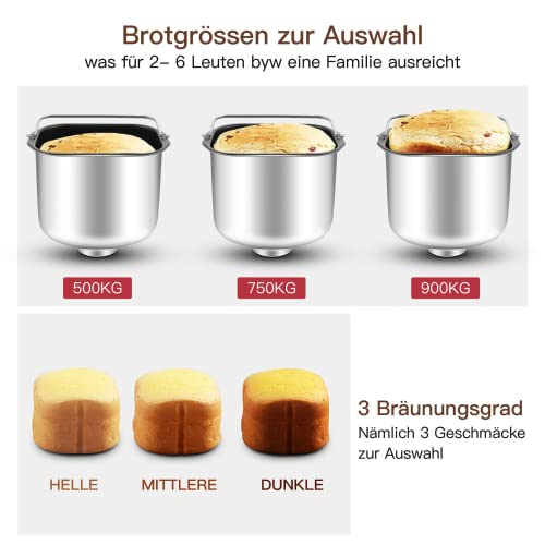 Macchina per il pane, macchina per il pane, macchina per il pane, in acciaio inox, con timer, 25 programmi di cottura, scomparto automatico per ingredienti, finestra di visualizzazione, colore argento : Amazon.it: Casa e cucina