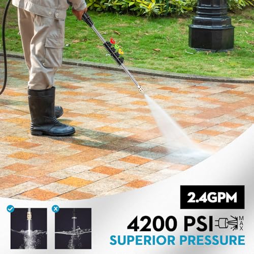 GREENER Idropulitrice elettrica 4200 PSI idropulitrice elettrica con tubo di uscita da 15,2 m e 4 ugelli rapidi, idropulitrice elettrica da 2,4 GPM con cannone per sapone, per auto, vialetto, pulizia : Amazon.it: Giardino e giardinaggio
