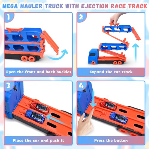 Cugybue Camion Giocattolo per Bambini,Auto Giocattolo Pista Portatile con 12 Auto da Corsa,Camion Macchinine per Bambini Set Giocattolo Veicolo di Trasporto,Blu : Giochi e giocattoli
