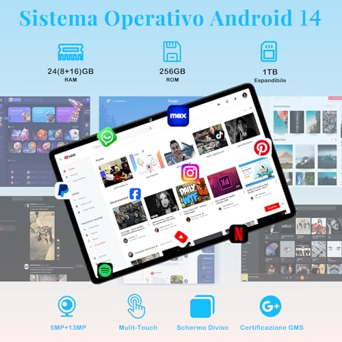 ZIOVO Tablet Android 14 Tablet 11 Pollici, 24GB RAM 256GB ROM (TF 1TB), 5G WiFi Tablet, Widevine L1/Octa Core 2.0 GHz/8000mAh/Corpo Metallico/13 5MP/BT5.0/Supporto Netflix, Tablet con Custodia Nero : Informatica