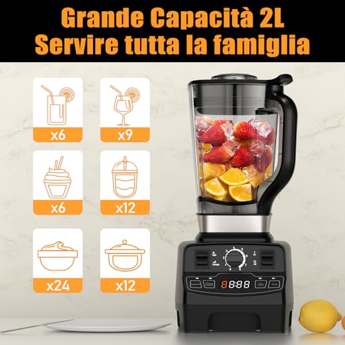 Enfmay Frullatore Smoothie, Frullatore Professionale 2000W con 8 Velocità Regolabili e 4 Preprogrammi, 2L Capacità, Frullatore per Frullati con Display LCD, Autopulente, 8 Lame Inossidabile, 33000RPM : Amazon.it: Casa e cucina