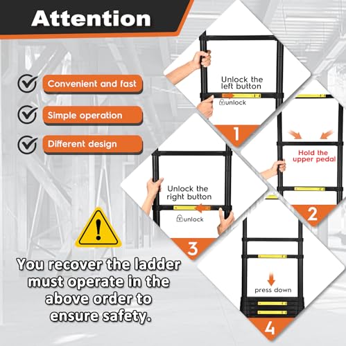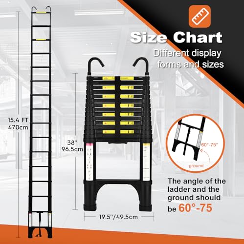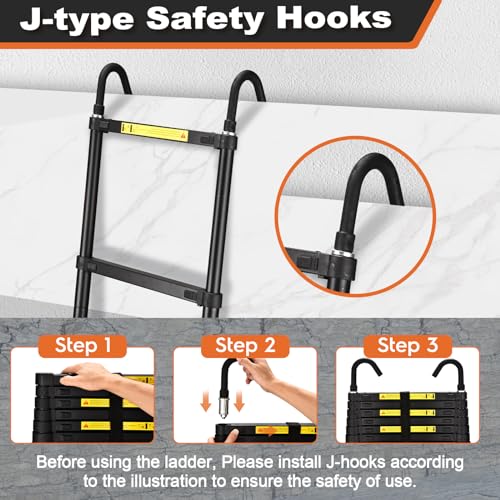 HBTower Scala telescopica da 4,7 metri con ganci e piedini antiscivolo, leggera scala pieghevole in alluminio per soppalchi, camper, esterni ed interni, capacità di 150 kg.Nero : Amazon.it: Fai da te