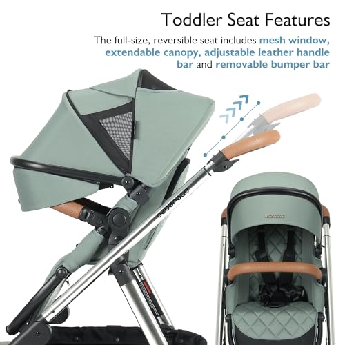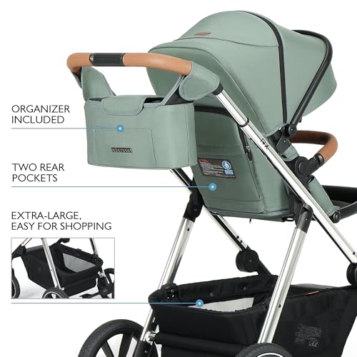 Beberoad RX Passeggino 3 in 1, passeggino pieghevole, seggiolino reversibile per bambini con organizer, parapioggia, parasole e zanzare, copertura 2 in 1 e grande cestino, verde : Prima infanzia