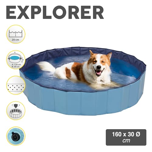 Croci Piscina per Cani Forma Circolare, Resistente con Pareti Rinforzate, Pieghevole e Salvaspazio, 160x160x30 Cm : Casa e cucina