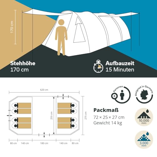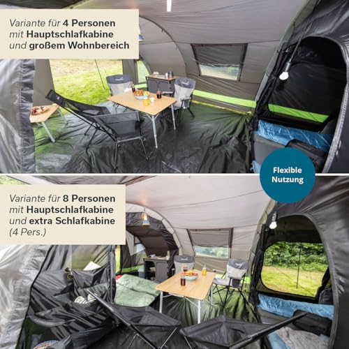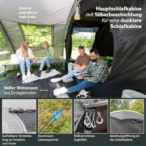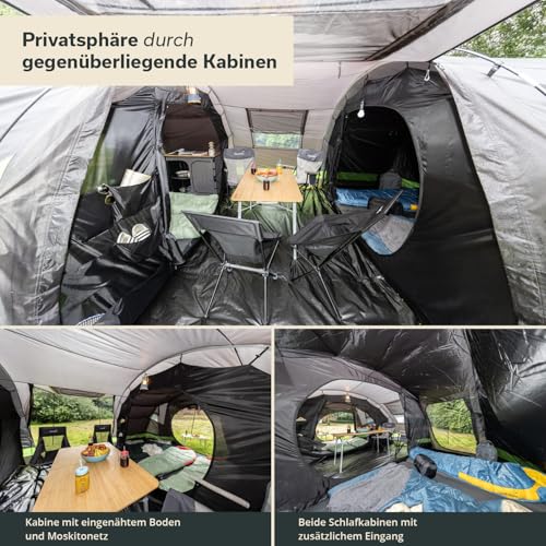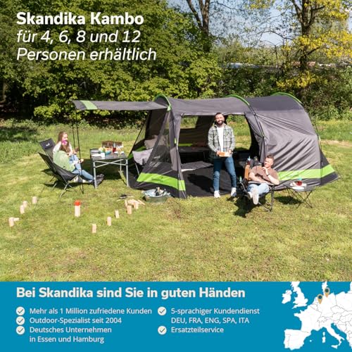 Skandika Kambo Tenda de campeggio tunnel Cabina letto per 6/8/12 persone Impermeabile con 3000 colonne d'acqua 2 m di altezza 3 ingressi tenda da sole (grigio/verde/8 persone) : Amazon.it: Sport e tempo libero