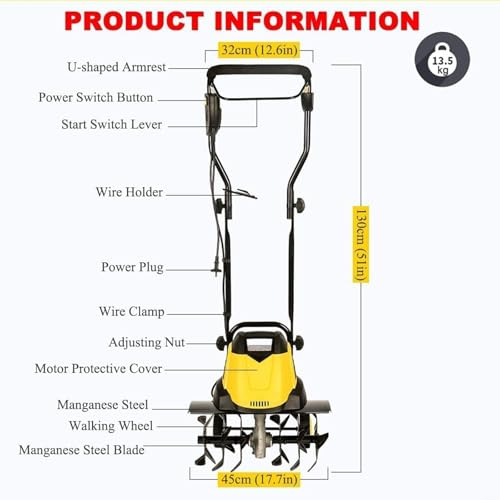 Coltivatore Elettrico, Motozappa da Giardino da 2400 W con 2 Ruote e 6 Lame, Larghezza di Aratura di 45 cm e profondità di Lavorazione di 22 cm, Coltivatore per Terreno e Prato con velocità a Vuoto : Amazon.it: Giardino e giardinaggio