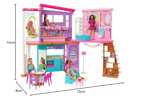 Barbie Barbie Casa di Malibu (106 cm) playset casa delle Bambole con 2 Piani, 6 stanze, Ascensore Altalena e più di 30 Pezzi, Giocattolo per Bambini 3 Anni, HCD50 : Amazon.it: Giochi e giocattoli