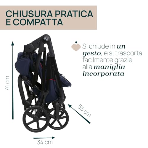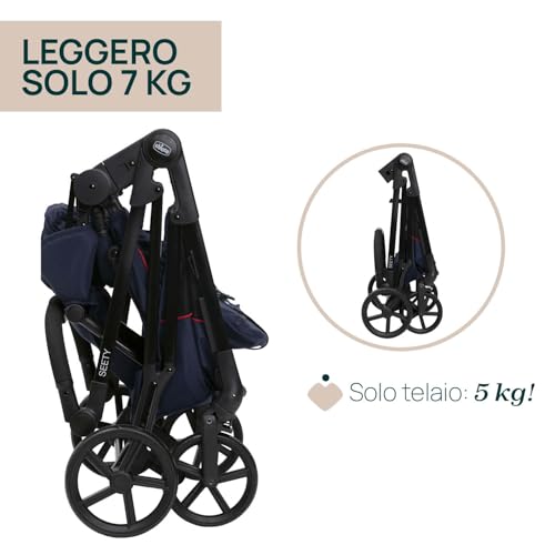 Chicco Passeggino Seety, Passeggino Leggero e Compatto Da 0 Mesi a 4 Anni, Portata Max 22kg, Passeggino Pieghevole, Schienale Reclinable, Chiusura Automatica in 1 Gesto, Capotte Parasole e Parapioggia : Prima infanzia