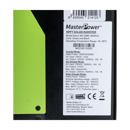 Inverter ibrido Master Power UM V2 3000 W 24 V MPPT 100 A fino a 3000 W in pannelli : Amazon.it: Commercio, Industria e Scienza