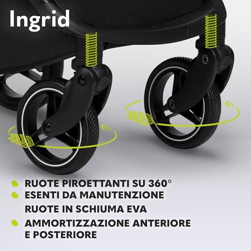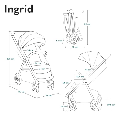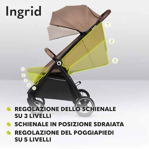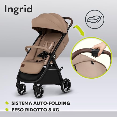 LIONELO INGRID Passeggino leggero per bambini da 6mesi a 4 anni/22kg Grandi ruote 360° in Schiuma EVA Assorbimento Pieghevole con una mano Schienale e poggiapiedi regolabili (INGRID, Beige) : Prima infanzia