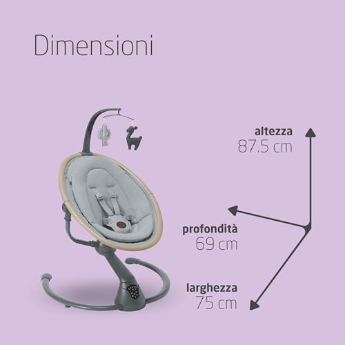Maxi Cosi Cassia Sdraietta Neonati Elettrica per Bambini, 0 6 mesi, max 9 kg, Altalena Neonato Girevole 360°, Reclinabile, Rilevamento Automatico Movimento, 5 Velocità, 12 Melodie, Beyond Grey : Prima infanzia
