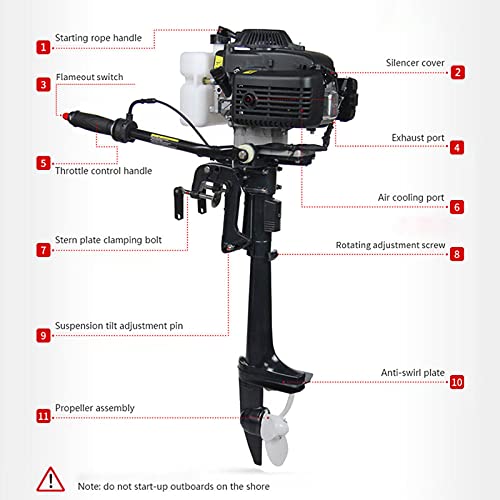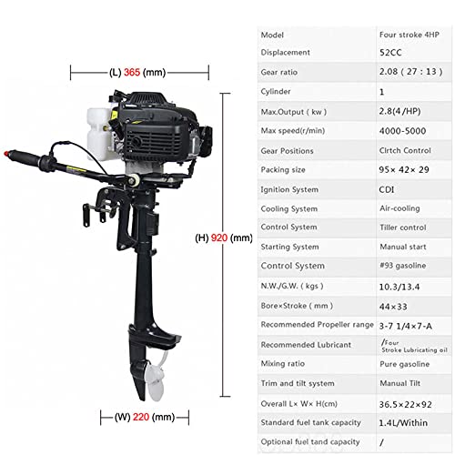 Motore per barca fuoribordo a 4 tempi 4HP Motore per barca da pesca 55CC con sistema CDI di raffreddamento ad aria per barca a vela per gommone Kayak Canoa Rotazione dello sterzo a 360 gradi : Amazon.it: Sport e tempo libero