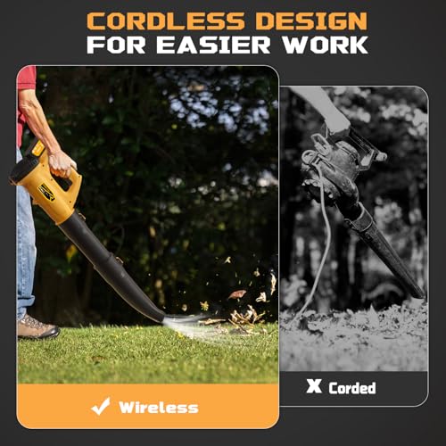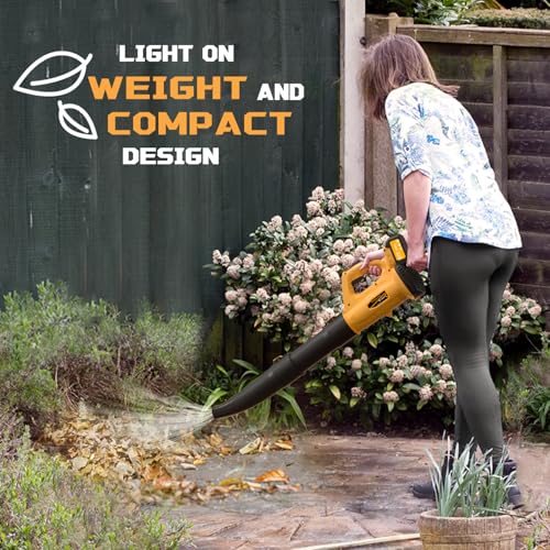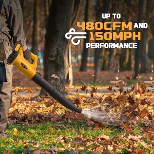 Soffiatore per foglie senza fili, 21 V, 2 batterie da 4,0 Ah e ricarica, 480 CFM/150 MPH e modalità 6 velocità, soffiatore per la cura del prato, patio, soffiaggio foglie e polvere : Amazon.it: Giardino e giardinaggio