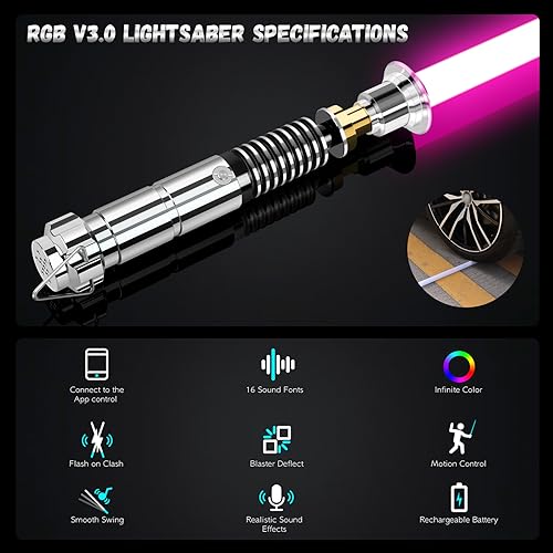 Smooth Swing Luke Duell Spada laser RGB 16 colori con controllo del movimento | 16 Sound Fonts manico in metallo Lightsaber FX spada per adulti regalo di ricarica USB C : Giochi e giocattoli