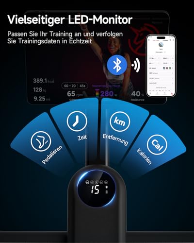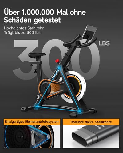 JASPORT Cyclette A3 – Volano da 7,5 kg, display a LED, altezza regolabile, supporto per tablet, fitness indoor con capacità di carico fino a 120 kg, compatibile con Kinomap e Zwift : Sport e tempo libero