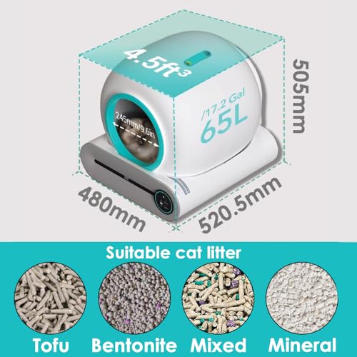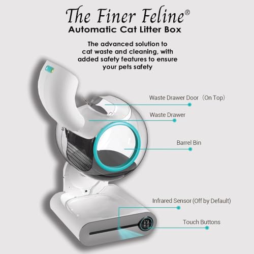 The Finer Feline, Lettiera per gatti autopulente, lettiera automatica per gatti, controllo APP e protezione di sicurezza, lettiera da 65 litri, deposito rifiuti da 9 litri, rimozione degli odori e : Amazon.it: Prodotti per animali domestici