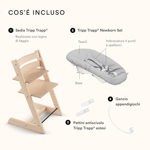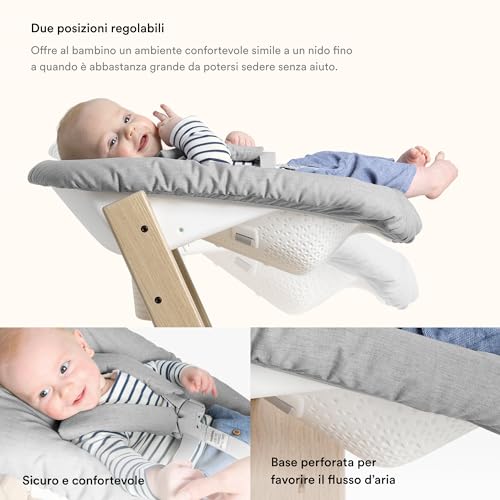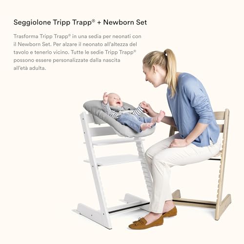 Sedia Tripp Trapp di Stokke (Storm Grey) con Newborn Set (Grigio) Per neonati fino a 9 kg Confortevole, sicuro e facile da usare : Prima infanzia