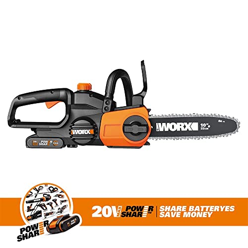 WORX Motosega a batteria WG322E.1, 18 V (20 V max), 2,0 Ah, PowerShare, lunghezza di taglio 25 cm e tensione automatica della catena, copertura per il trasporto, caricatore rapido 1 ora : Amazon.it: Giardino e giardinaggio