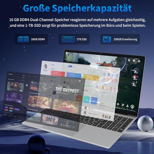 Computer portatile da 15,6", 16 GB DDR4, 1 TB SSD, quad core Celeron N5095 CPU (fino a 2,9 GHz), studente/business con display FHD 1080P, batteria 44 WH, 2.4/5G WiFi, BT 4.2, tastiera retroilluminata : Informatica