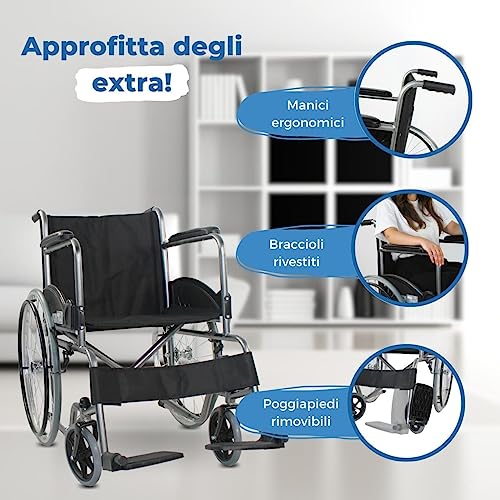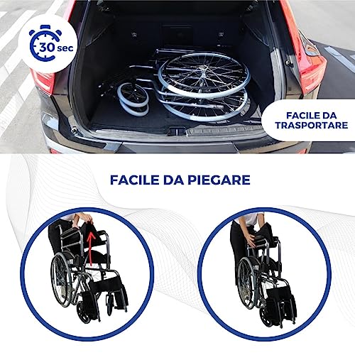 Mobiclinic®, Sedia a rotelle, Auto propulsa, Carrozzina pieghevole, Alcazaba, Seduta 46 cm, Sistema per superare i cordoli, Braccioli imbottiti, Poggiapiedi ribaltabili, Leggera, Freno sulle ruote : Amazon.it: Salute e cura della persona