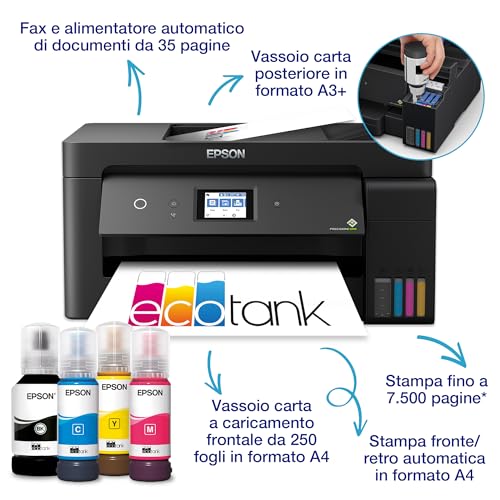 Epson EcoTank ET 15000 Stampante Multifunzione A4 e A3(Stampa, Copia, Scansione), Alimentatore automatico di documenti AirPrint, Serbatoi Flaconi Alta Capacità, Fronte/Retro, Nero : Epson: Informatica