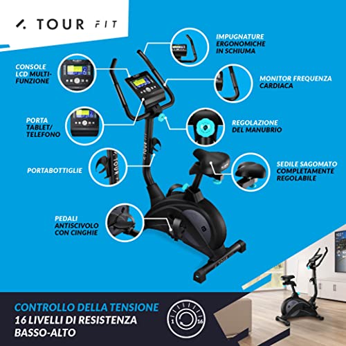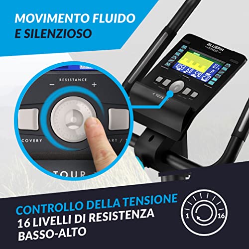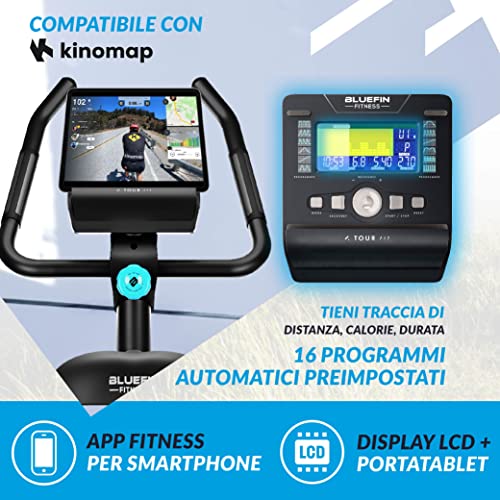 Cyclette Bluefin Fitness Tour FIT | Cyclette uso domestico | Sensore pulsazioni | Kinomap Compatibile | Macchina da ciclismo | Console LCD | Cyclette a resistenza magnetica : Sport e tempo libero
