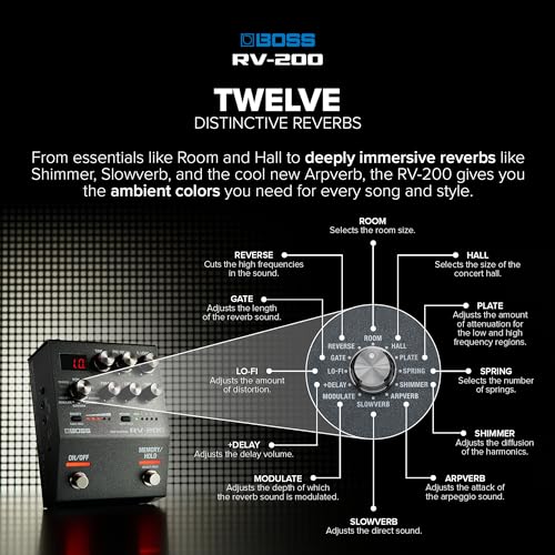 Riverbero BOSS RV 200 | Effetti di Riverbero di Qualità Superiore, nel Design Essenziale dei Pedali Effetto BOSS Serie 200 per Chitarra e Altri Strumenti | 12 Tipi di Riverbero, incluso l'Arpverb : Amazon.it: Strumenti Musicali