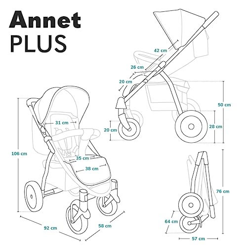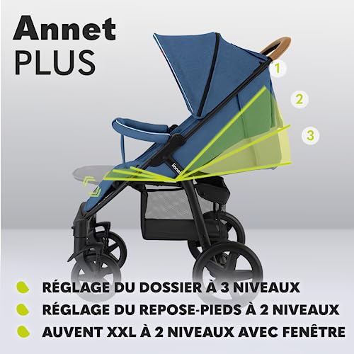 Lionelo Annet Passeggino Leggero Pieghevole Grigio Regorabile Con Posizione Sdraiata Con Ruote Eva Cappottina Xxl Con Zanzariera Coprigambe Portabibite Fino 22 Kg (, Standard), Blu : Prima infanzia