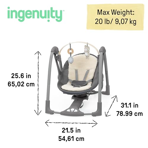 Ingenuity Altalena Portatile Swing 'n Go Every Season Tessuti Freschi e Caldi, Barra Giochi Rimovibile in Legno, 2 Giocattoli, Musica, Motorizzata, 0 9 Mesi, Grigio Wesley : Amazon.it: Prima infanzia