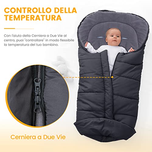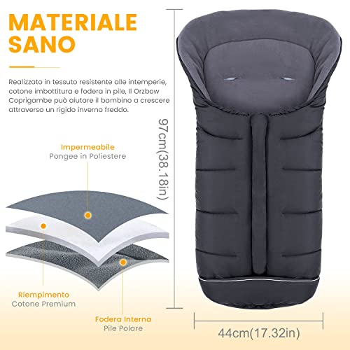 Orzbow Sacco Termico Passeggino Universale,Invernale Coprigambe per Carrozzina,Cappuccio con Coulisse,Fodera in Caldo Pile,Bande Riflettenti,Cerniera,Impermeabile e Lavabile in Lavatrice (Nero) : Prima infanzia