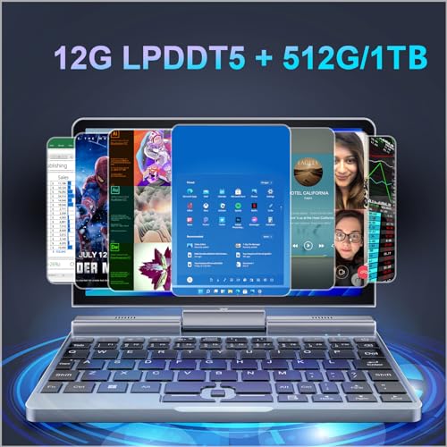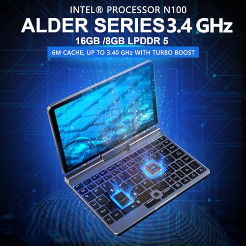 Mini computer portatile 2 in 1 da 8 pollici, con schermo tattile HD, Windows 11 Pro, piccolo computer portatile per affari e studenti, Intel N100 12 GB LPDDR5 1 TB M.2 SSD, Wi Fi 6, fotocamera BT5.2 : Informatica