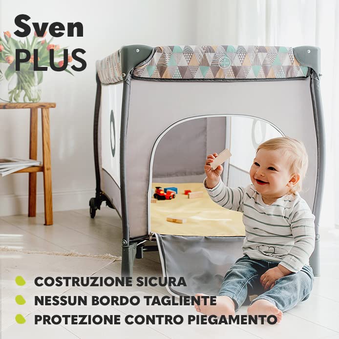 lionelo Sven 2in1 Box bambini dalla nascita fino 15kg Lettino pieghevole con Fasciatoio baldacchino Giocattoli Pendenti Ingresso laterale aggiuntivo Sistema LockGuard : Prima infanzia